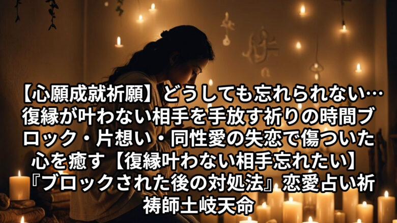 【心願成就祈願(しんがんじょうじゅきがん)】どうしても忘れられない…復縁が叶わない相手を手放す祈りの時間。ブロック・片想い・同性愛の失恋で傷ついた心を癒す【復縁 叶わない 相手 忘れたい】『ブロックされた後の対処法』恋愛占い 祈祷師 土岐天命